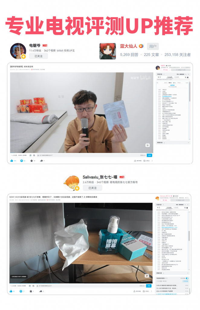 蓝大仙人、电锯、张七七喵等专业电视评测UP推荐