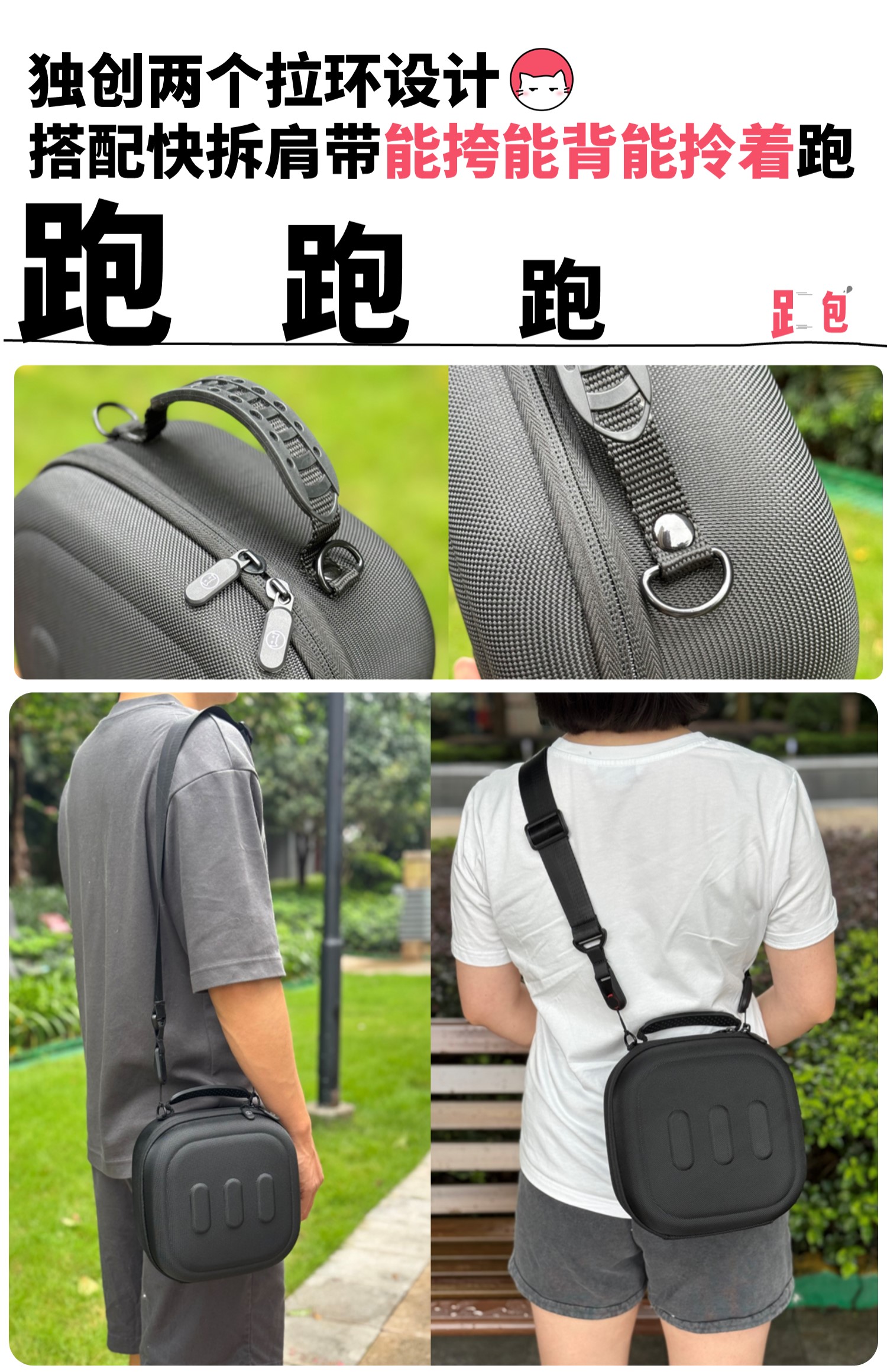 而且多了两个拉环,搭配快拆肩带可以变成小挎包